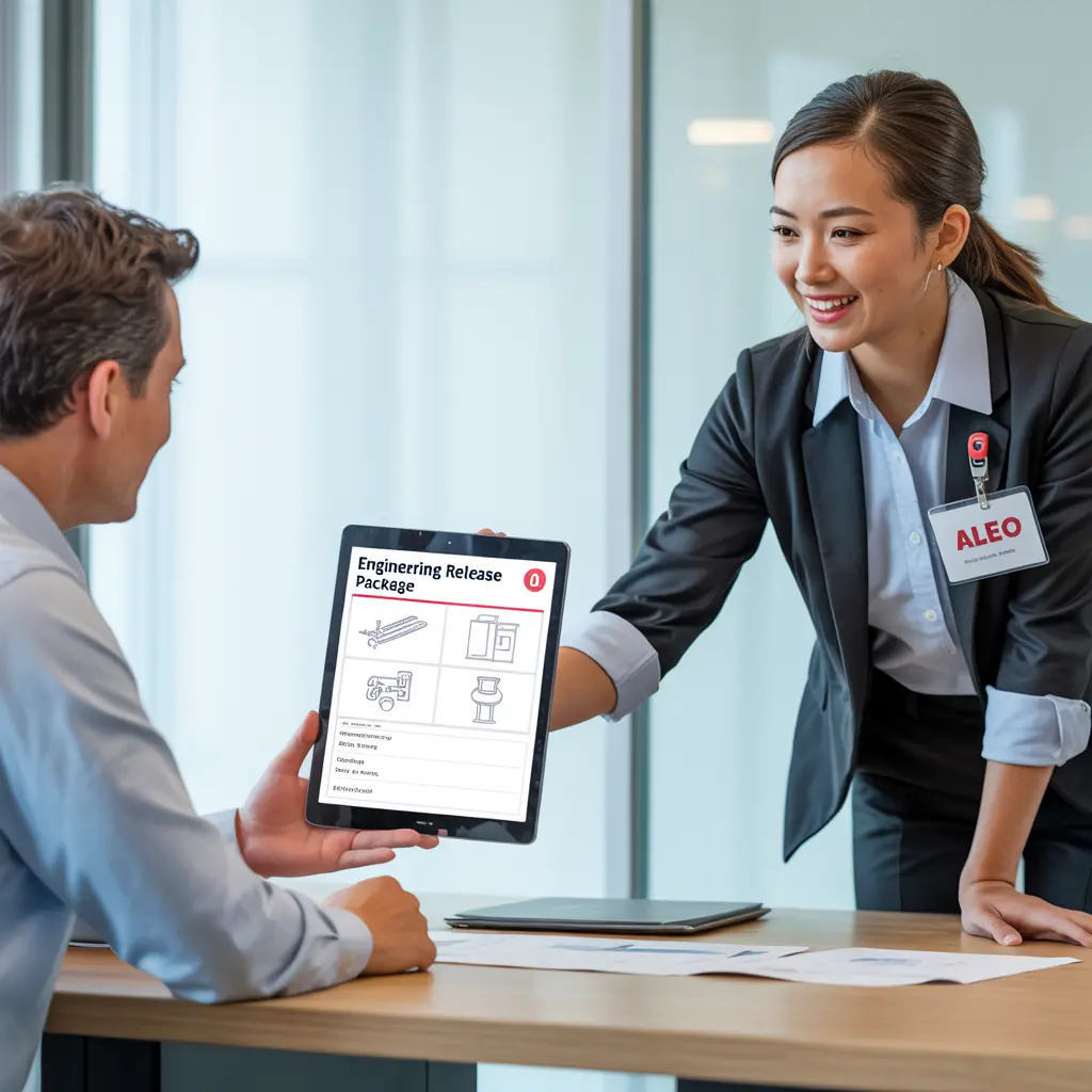 Finalized engineering designs are released as comprehensive packs, including GA drawings, wiring diagrams, and bills of materials for seamless partner execution.